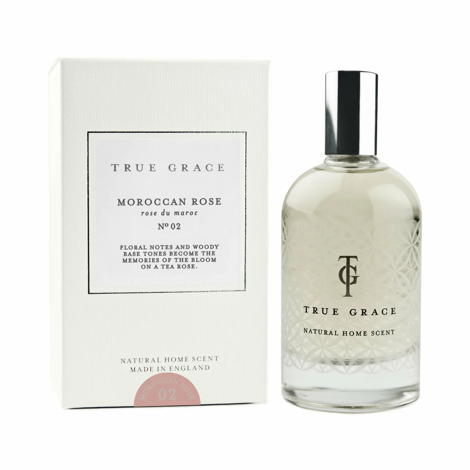 A home scent created by combining our beautiful fragrance with water and an alcohol base derived from organic wheat. Presented in our traditional patterned glass.